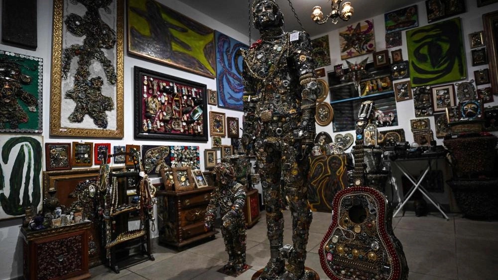 عند دخول الزائر، يمر عبر مدخل مزين بصحون متعددة الألوان، ليصل إلى غرفة تشبه الكهف، وهي نقطة البداية لمتاهة من صالات العرض ذات الأسقف المنخفضة والسلالم الضيقة. الجدران مغطاة بالحصى البني ومزينة بمئات القطع المتنوعة، بدءًا من الألعاب البلاستيكية إلى العملات القديمة، التي تبرع بها الزوار.