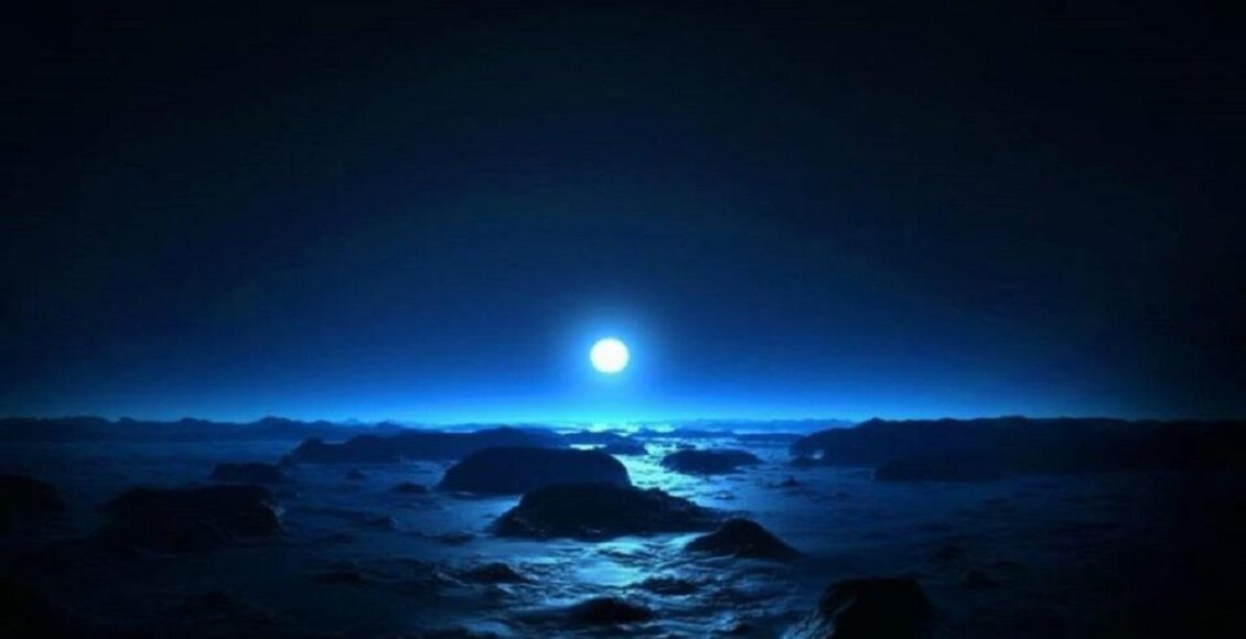 وعند غروب الشمس، عندما يكون أمام الضوء مسافة أطول ليقطعها، يتبدد الضوء الأحمر، ويرسم السماء بلون أزرق بارد.