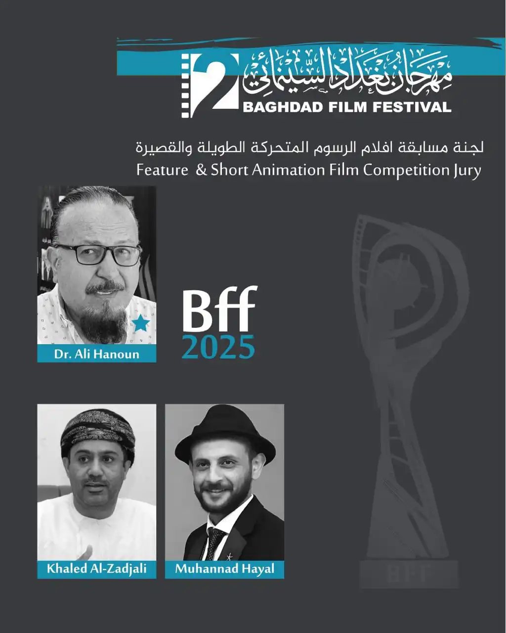 مسابقة أفلام الأنيميشن: يرأسها الدكتور علي حنون من العراق، وتضم المخرج العُماني خالد الزدجالي، والمخرج العراقي مهند حيال.