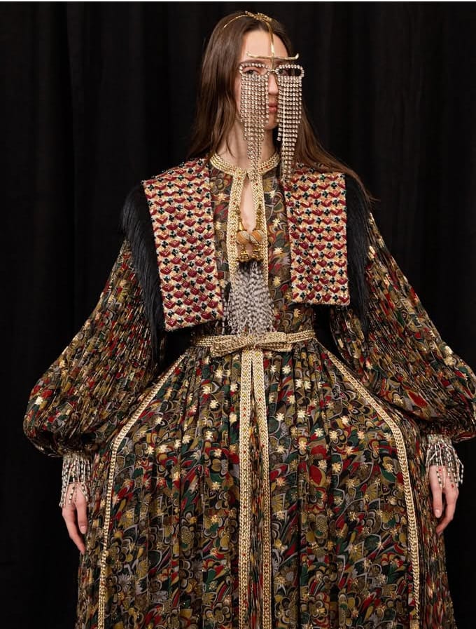 ميشيل المهووس بالتاريخ المسكون بالحنين كل ثوب وكل قطعة نراها في فالنتينو هذا العام هي ترداد صدى لكل فكرة طارئة أو مرت في مخيلته وأرادها حفراً ونقراً وتطريزاً وشكاً أن يجعل منها شاهدة على اليوم وتحكي لغة الامس.