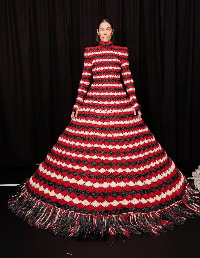 أثواب جاء بها من عمق تجربة فنية بدأها في غوتشي وأكملها مع فالنتينو. وراح يوسع الدار برؤاه الخالدة. أثواب فنتج مسرحية قاتلة حية مدهشة. مئات الساعات من الشغل اليدوي المبدع قد تأخذ ليخيط ياقة أو ثوب او تنورة الف ساعة من الوخز المدمم بأطراف الأصابع وبصمة العيون التي لا تزيح عن صنع قماشة الحاضر التي ستخلد للأبد.