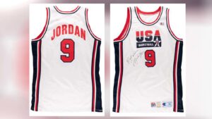 طرح قميص ملطخ بالعرق ارتداه أسطورة كرة السلة الأمريكي مايكل جوردان في حصة تدريبية في أولمبياد 1992 للبيع في المزاد في لوس أنجليس في يونيو مع توقعات بأن يتراوح سعره بين 400 ألف و600 ألف دولار.