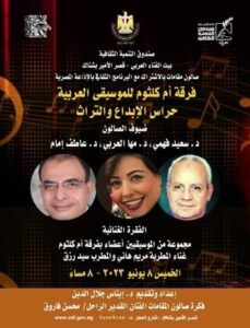 يقام الصالون هذا الشهر تحت عنوان (فرقة أم كلثوم للموسيقى العربية..حر ّاس الإبداع والتراث)