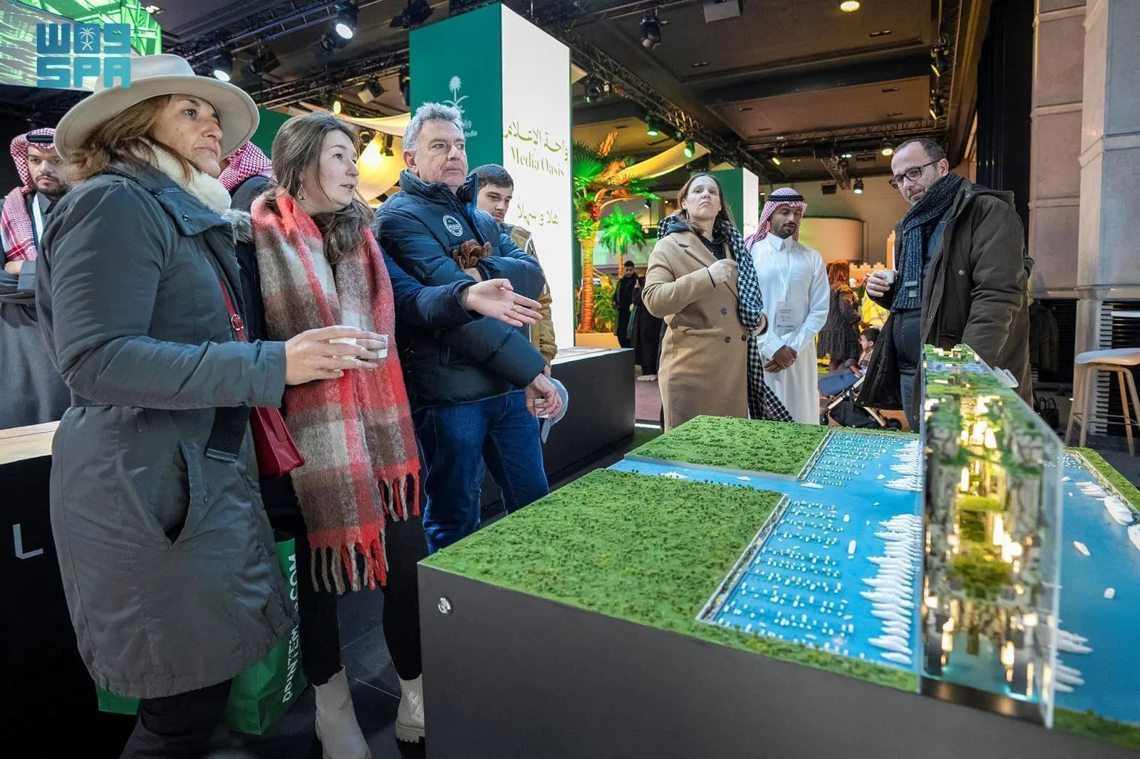واستهدفت وزارة الإعلام من هذه الواحة إبراز التحوّلات الحضارية والتنموية التي تشهدها المملكة في جميع المجالات الحيوية والمتنوعة، واستعراض أهم المشروعات الكبرى التي تعمل المملكة على تنفيذها وفق رؤية المملكة 2030، وذلك من خلال المعارض المقامة على مساحة الواحة لعدد من المؤسسات والجهات الحكومية والخاصة، التي تقدم لجميع الزوار من مسؤولين ومهتمين دوليين في مختلف المجالات، من خلال عروض تفاعلية ذكية بأساليب حديثة وتقنيات متطوّرة، تروي حكاية مجد الإنسان والمكان، وتلقي أسئلة الضيوف والإعلاميين، والإجابة على جميع استفساراتهم من قبل الخبراء والمختصين المسؤولين عن تلك المشروعات.