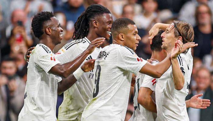 وسجل لريال مدريد، رودريجو “هدفين” وفينيسيوس جونيور “هدفين” وكيليان مبابي بالدقائق (23، 34، 48، 55، و77).