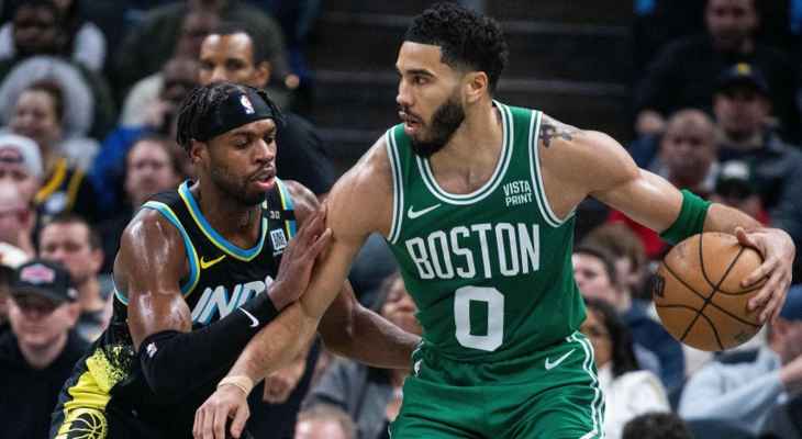 سجل جايسون تاتوم 38 نقطة محققا أعلى مستوى له هذا الموسم بثماني رميات ثلاثية وأضاف جايلين براون 31 نقطة ليقودا بوسطن سيلتيكس على قطع سلسلة انتصارات انديانا بيسرز المتتالية في ست مباريات بالفوز عليه بنتيجة 118-101 .