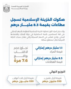 وأعلنت وزارة المالية الإماراتية من خلال بيان صحفي حصلت “نُص خبر” على نسخة منه اليوم، عن إدراج وبدء تداول أول إصدار من صكوك الخزينةالإسلامية T-Sukuk المقوّمة بالدرهم الإماراتي، والتي أصدرتها الوزارة كجهة مصدرة بالتعاون مع “مصرف الإمارات المركزي” كوكيل للإصدار والدفع، معمعيار قياسي لحجم المزاد يصل إلى 1.1 مليار درهم.