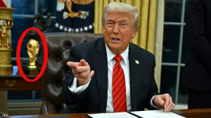 لكن ذلك لم يكن الأمر الوحيد الذي أثار الاستغراب في البيت الأبيض، وتحديدا في المكتب البيضاوي الشهير، الذي يوقع به ترامب أوامره التنفيذية، الجدلية في معظم الأحيان.