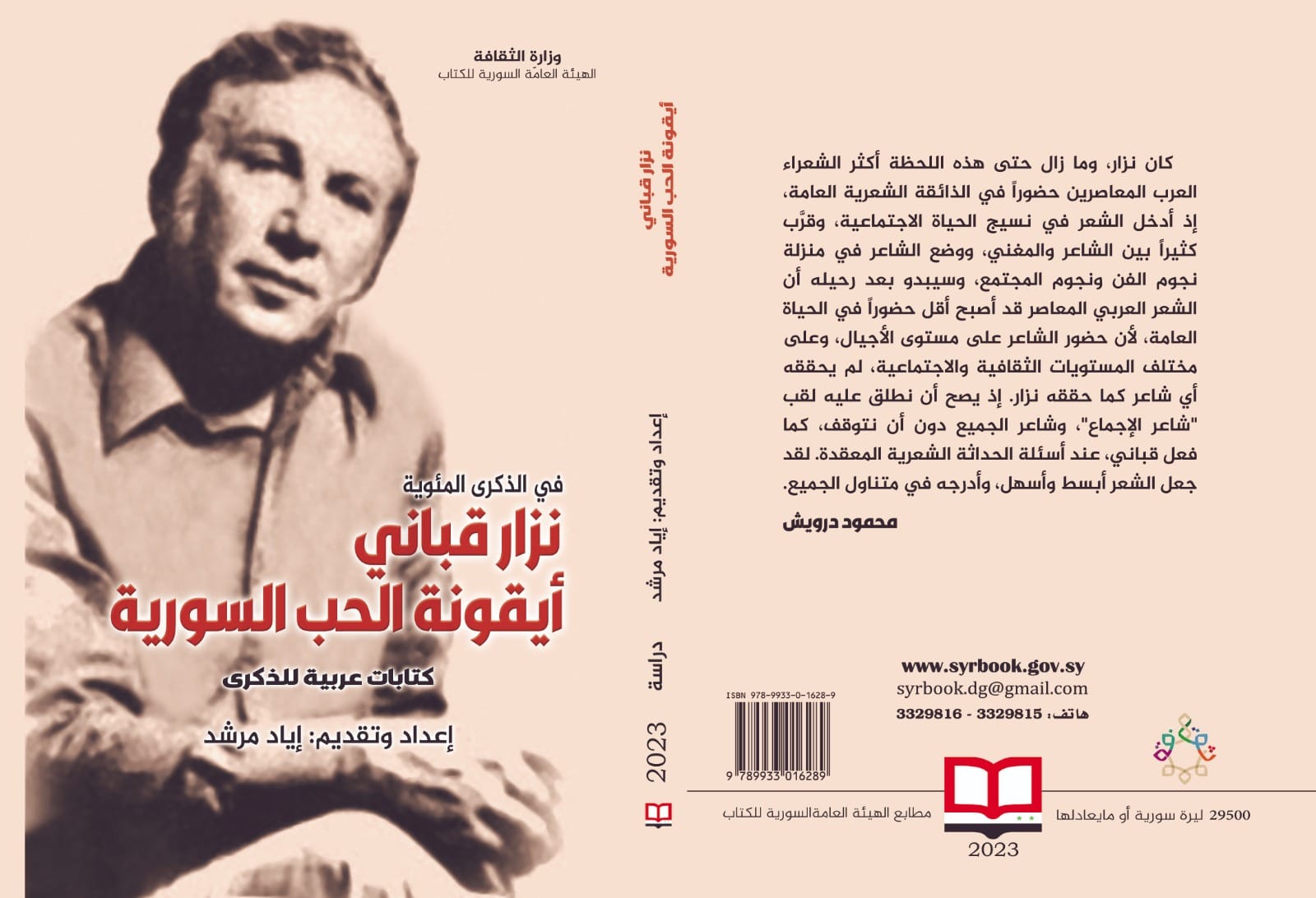 بمناسبة الذكرى المئوية لولادة الشاعر السوري الكبير نزار قباني صدر حديثاً عن الهيئة العامة السورية للكتاب، “نزار قباني أيقونة الحب السورية.. كتابات عربية للذكرى” وهو من إعداد وتقديم إياد مرشد.