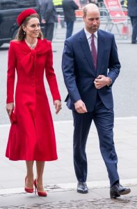 تألقت أميرة ويلز، كيت ميدلتون بمعطف طويل باللون الأحمر خلال حضورها خدمة يوم الكومنولث (Commonwealth) في دير وستمنستر برفقة زوجها، الأمير ويليام.