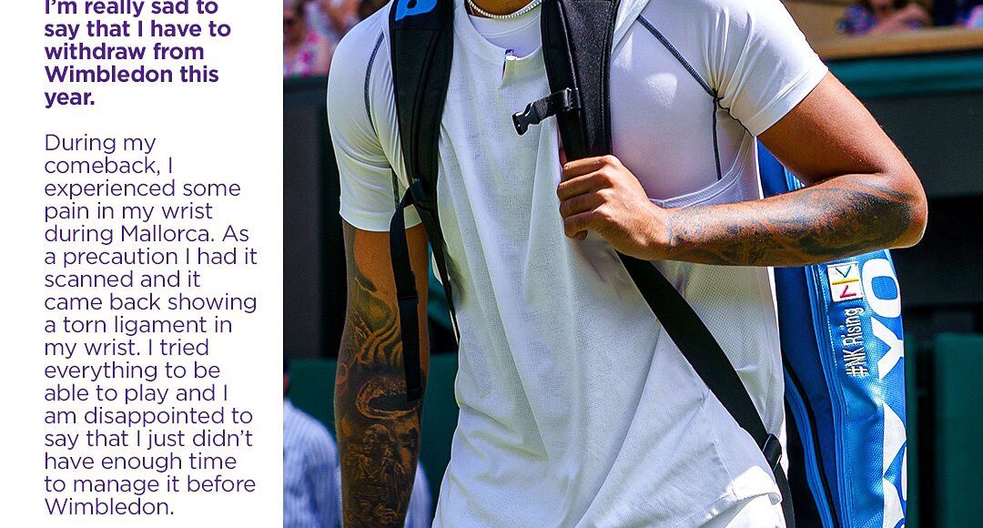 وقال كيريوس عبر حسابه في إنستغرام بخاصية الستوري: “أنا حزين حقًا لأني سأنسحب من ويمبلدون هذا العام. حاولت جاهدًا أن أكون جاهزًا بعد الجراحة وأن أكون قادراً على الحضور في ملاعب ويمبلدون مرة أخرى”.