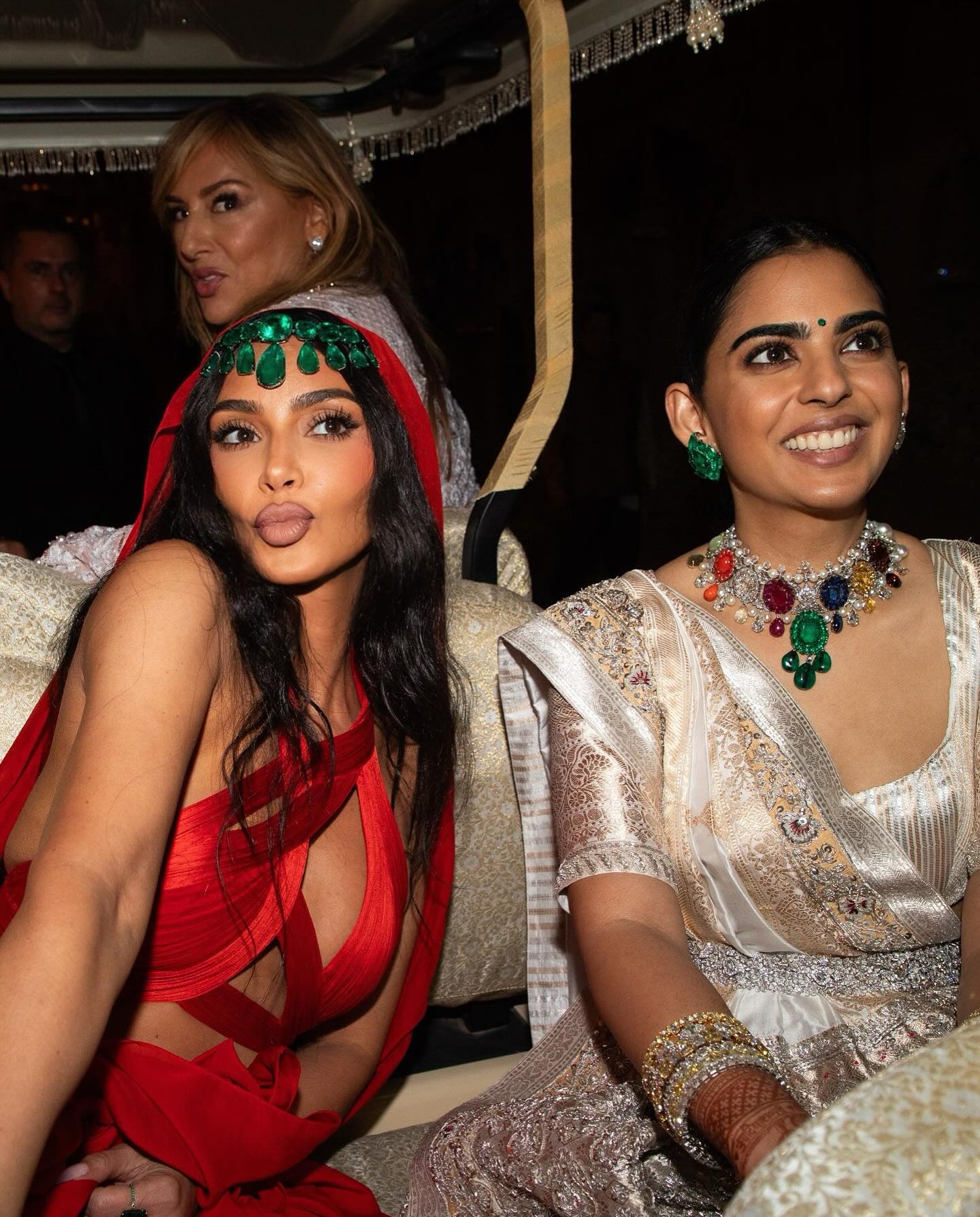 باللون الأحمر والزمرد تأنقت كيم كارداشيان في حفل زفاف أنانت أمباني الابن الأصغر لموكيش أمباني أغنى رجل في آسيا، وراديكا ميرشانت ابنة فيرين ميرشانت مؤسس شركة “إنكور” للرعاية الصحية العملاقة في صناعة الأدوية.