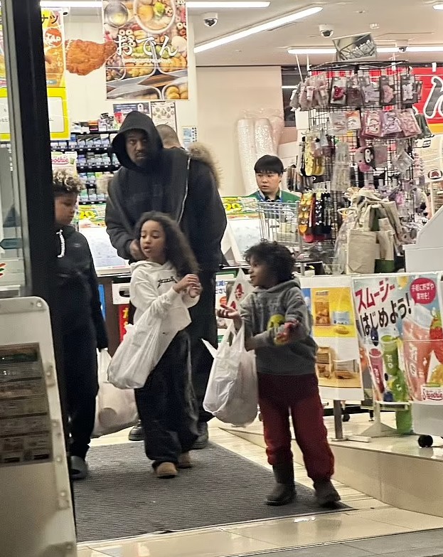 وأظهرت صور ومقطع فيديو حصريّ لـ ويست وهو يزور متجر 7-Eleven في منطقة جينزا في طوكيو مع سانت وشيكاغو وبسالم.