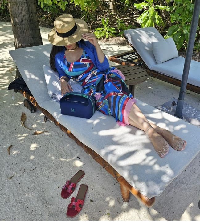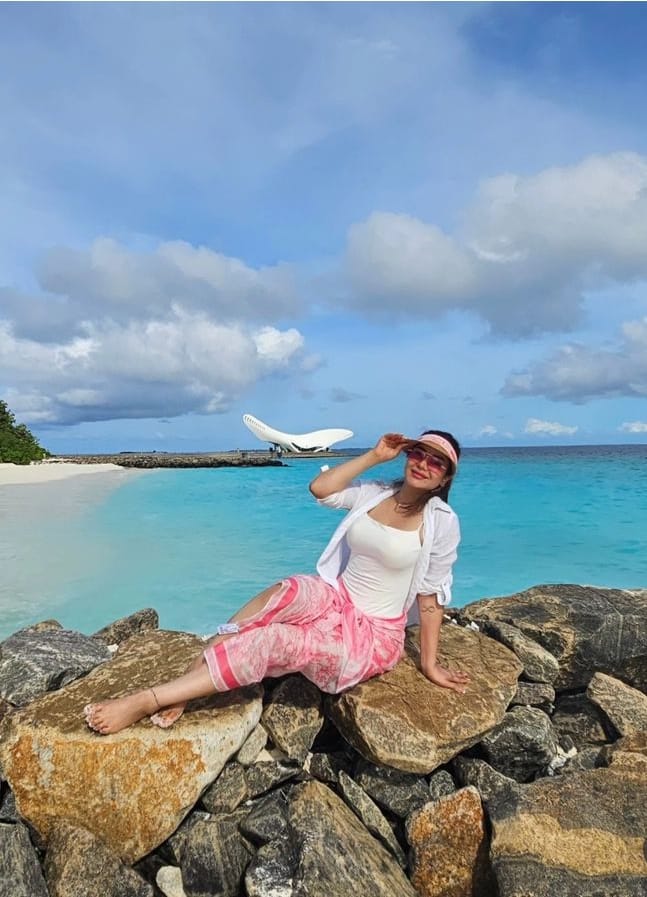 تنشر لجين عمران أناقتها في ظلال الصيف على بحر المالديف حيث تقضي أجازتها هناك.
