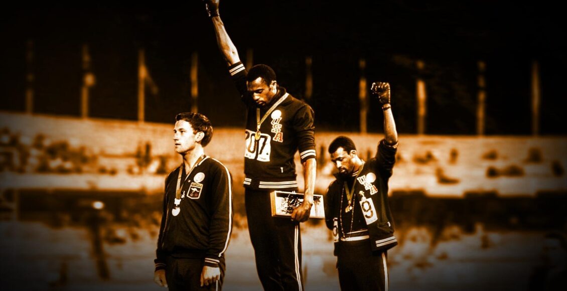 خلال حفل الميدالية في الاستاد الأولمبي في مكسيكو سيتي في 16 أكتوبر 1968، قام اثنان من الرياضيين الأمريكيين من أصل أفريقي، تومي سميث وجون كارلوس، برفع قبضتهما بقبضة قفاز أسود أثناء عزف النشيد الوطني للولايات المتحدة وذلك كنوع من الاحتجاج على العنصرية التي واجهاها.