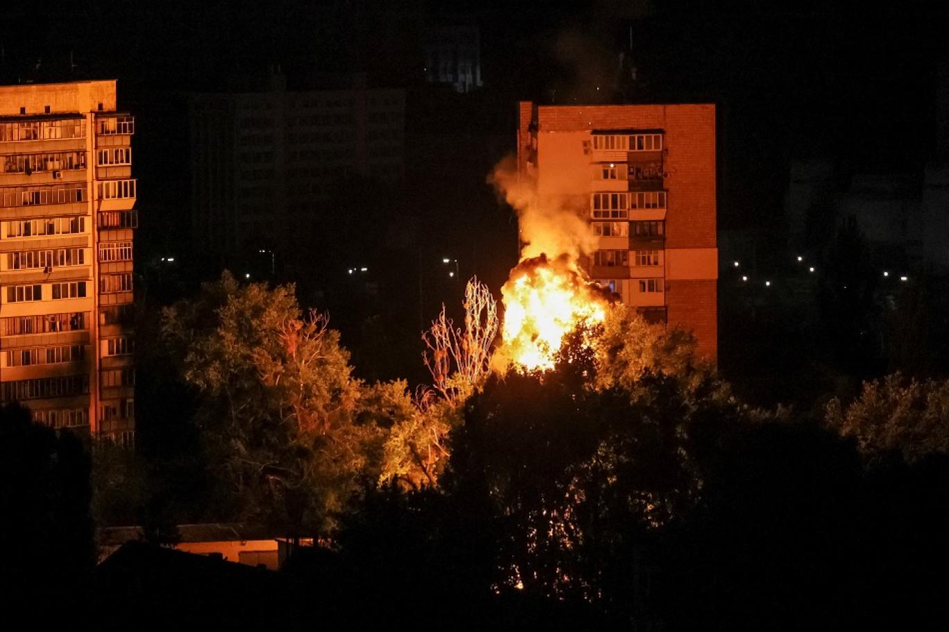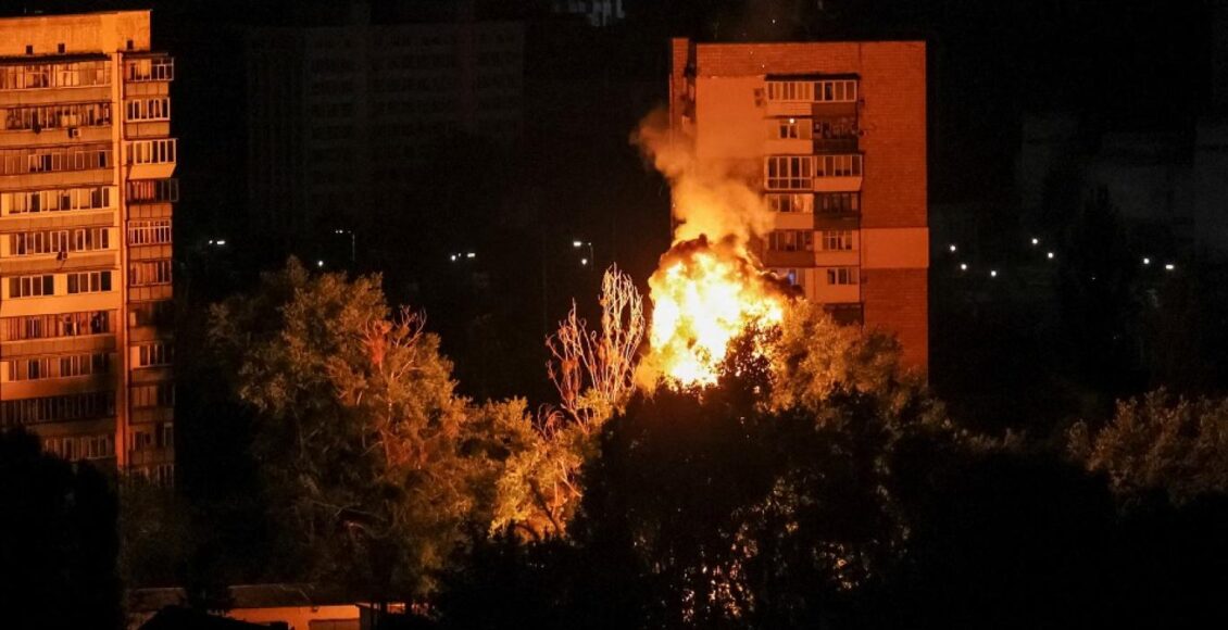 وسُمع دوي انفجارات في أجزاء مختلفة من المدينة، وسقطت حطام طائرات مسيرة تم اعتراضها على أربع مناطق بالعاصمة الأوكرانية، وفقًا لوزارة الشؤون الداخلية الأوكرانية. لحقت أضرار بالمباني ونقل شخصان إلى المستشفى مصابين بشظايا.