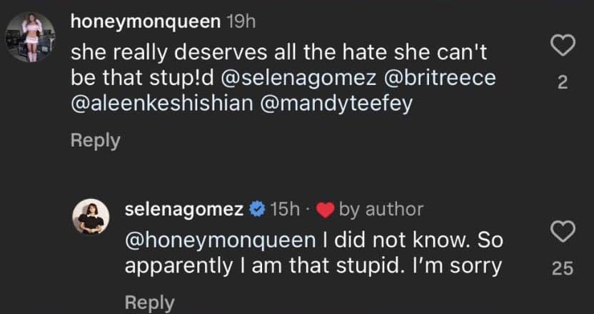 وفي التفاصيل، شاركت سيلينا عبر خاصية “الستوري” في “إنستغرام” صوراً توثق استمتاعها بنزهة صيفية، تظهر إحداها سلة قش إلى جانبها مشروب قهوة من “ستاربكس” ومستحضرات تجميل من علامتها التجارية Rare، لتعلّق إحدى المتابعات على صورتها بالقول: “إنها تستحق الكراهية كلها، لا يمكن أن تكون بهذا الغباء؟”، لتردّ عليها سيلينا، مشددةً على عدم معرفتها بأن المنتج مقاطَع، وكتبت: “لم أعلم ذلك، لهذا السبب أعتقد أني غبية.. أنا آسفة”.