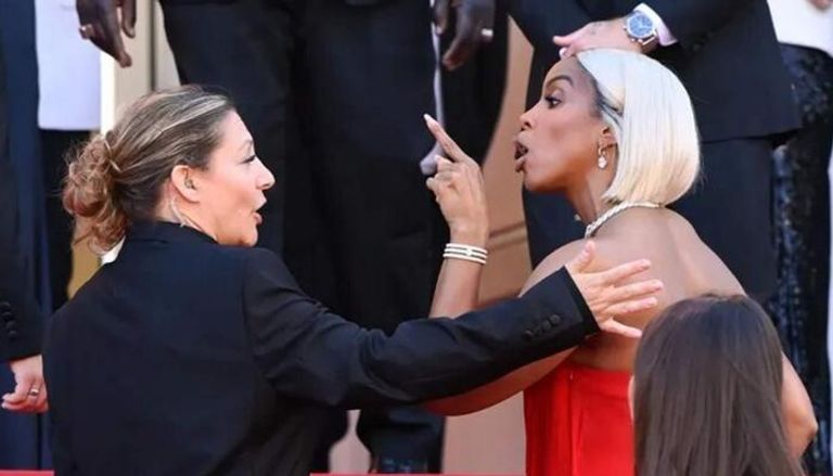 بينما حاول مساعدوها تهدئة الوضع بين الطرفين وسط الحضور وعدسات المصورين.