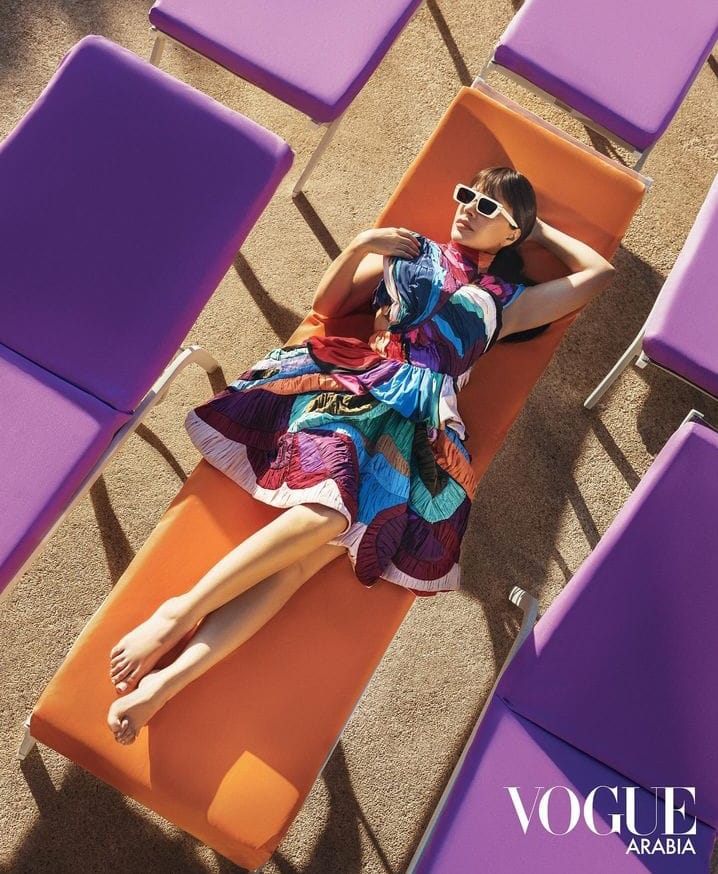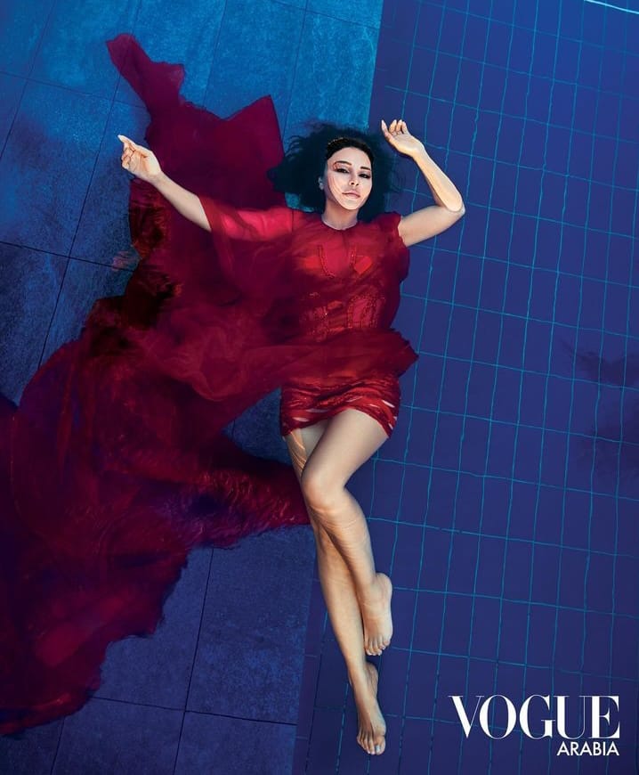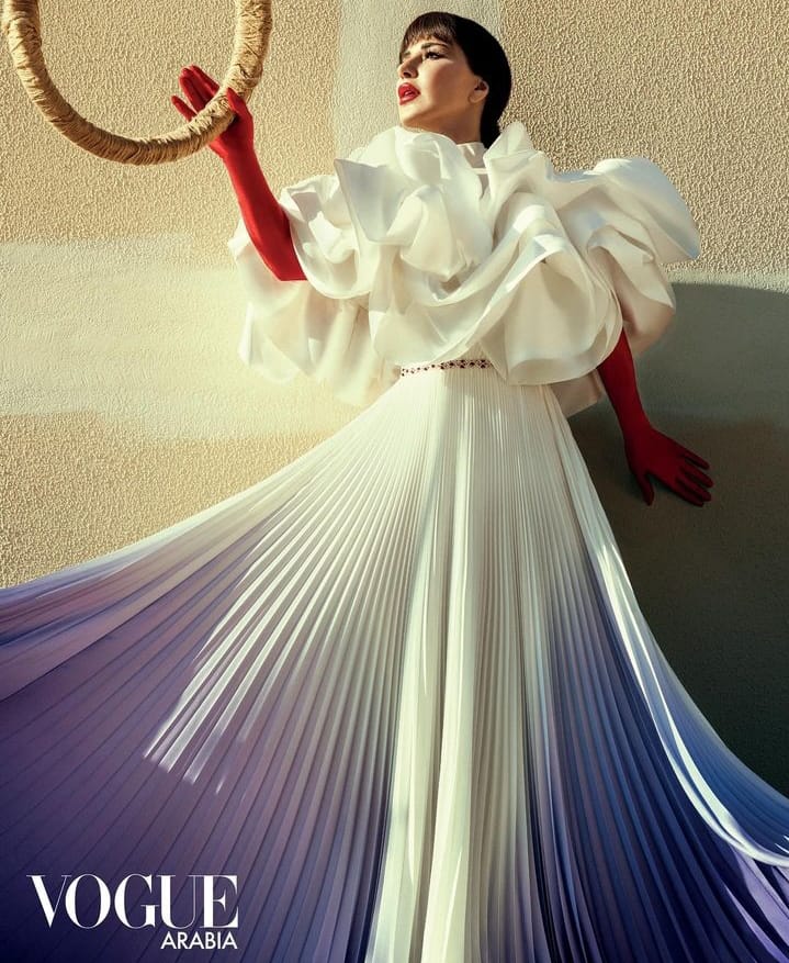خضعت ماغي بو غصن لجلسة تصوير مع مجلة فوغ العربية وظهرت متلونة كاسرة لحدود الصورة، فهي إما واقفة بكامل هندامها الراقي أو نائمة فوق حوض السباحة أو ممددة على الرمال لا يطولها سوى الموج والشمس.