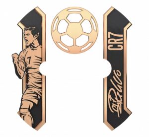 وبحسب “Jacob & Co”، تم تصميم ركيزتين في مجموعة “Jacob & Co x CR7 Epic X”، وتُمثل هاتين الركيزتين كريستيانو رونالدو وعلامته التجارية CR7. حيث يأخذ العمود الأيسر شكل كريستيانو رونالدو نفسه في أوضاع مختلفة بينما يحمل العمود الأيمن شعار CR7 وتوقيع رونالدو اليدوي ، وكلاهما محفور بأحرف كبيرة. إضافة إلى غطاء برميل الهيكل العظمي علىشكل كرة القدم، وصورة أخرى لكريستيانو رونالدو مرتديًا قميصه الشهير رقم 7 المحظوظ ، مطبوع بالفضة على ظهر العلبة ومصبوغة بالكريستال الياقوتي.