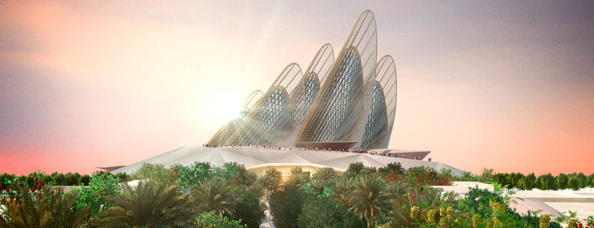 وتنبثق هذه الهياكل من تل مبني يحاكي تضاريس الإمارات للاستفادة من الخصائص الحرارية، وتصبح أكثر برودة بفضل التدفق المستمر للهواء المنعش المسحوب عبر الأنابيب الموزعة تحت الأرض.