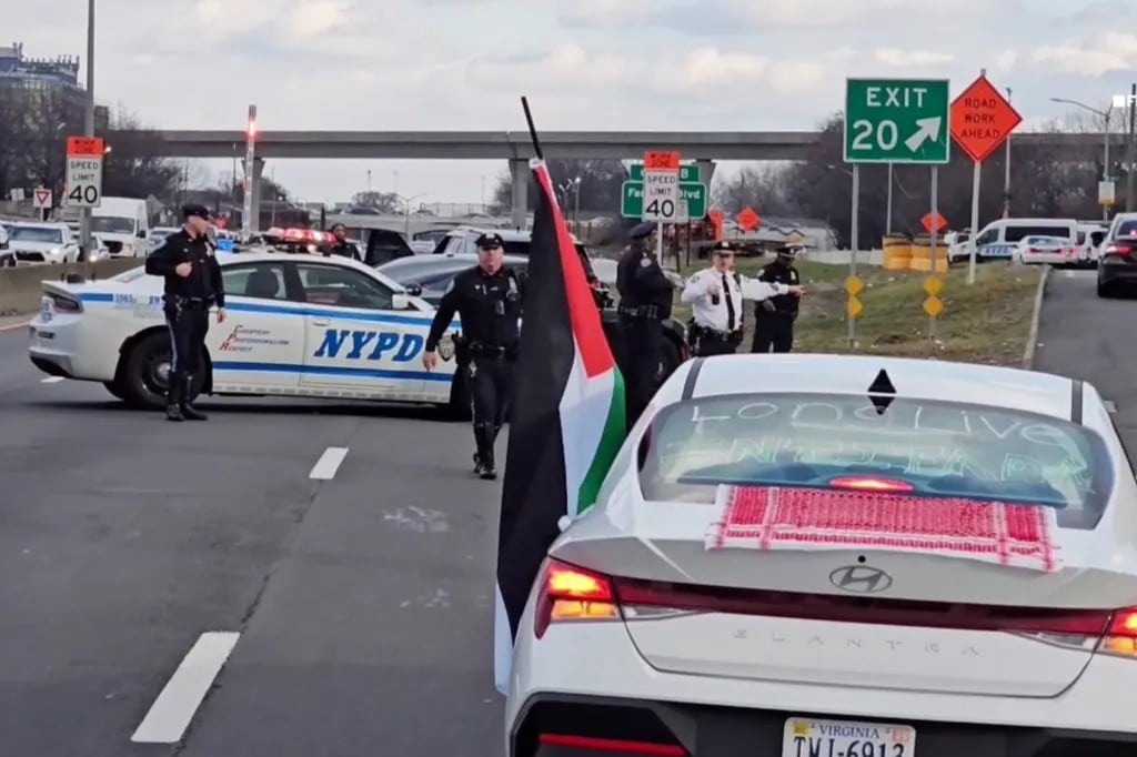 أدى المتظاهرون المناهضون لإسرائيل وهم يرددون هتافات مناصرة لفلسطين إلى إعاقة حركة المرور وتسببوا في حالة من الفوضى أثناء نزولهم إلى مطار جون إف كينيدي الدولي مما خلق كابوسًا في أحد أكثر أيام السفر ازدحامًا في العام.