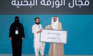 أما في مجال (الورقة البحثية) فقد حصد المركز الأول: جنيد يوسف عبدالرقيب، طالبٌ في جامعة الملك سعود من جمهورية الهند، في حين كان المركزان الثاني والثالث من نصيب كلٍّ من: أسماء عبدالمطلب يحيى جالو، طالبة في جامعة الأميرة نورة من جمهورية مالي، ويليها: سيسي بانغالي، طالبٌ في جامعة الإمام محد بن سعود الإسلامية من جمهورية ساحل العاج.