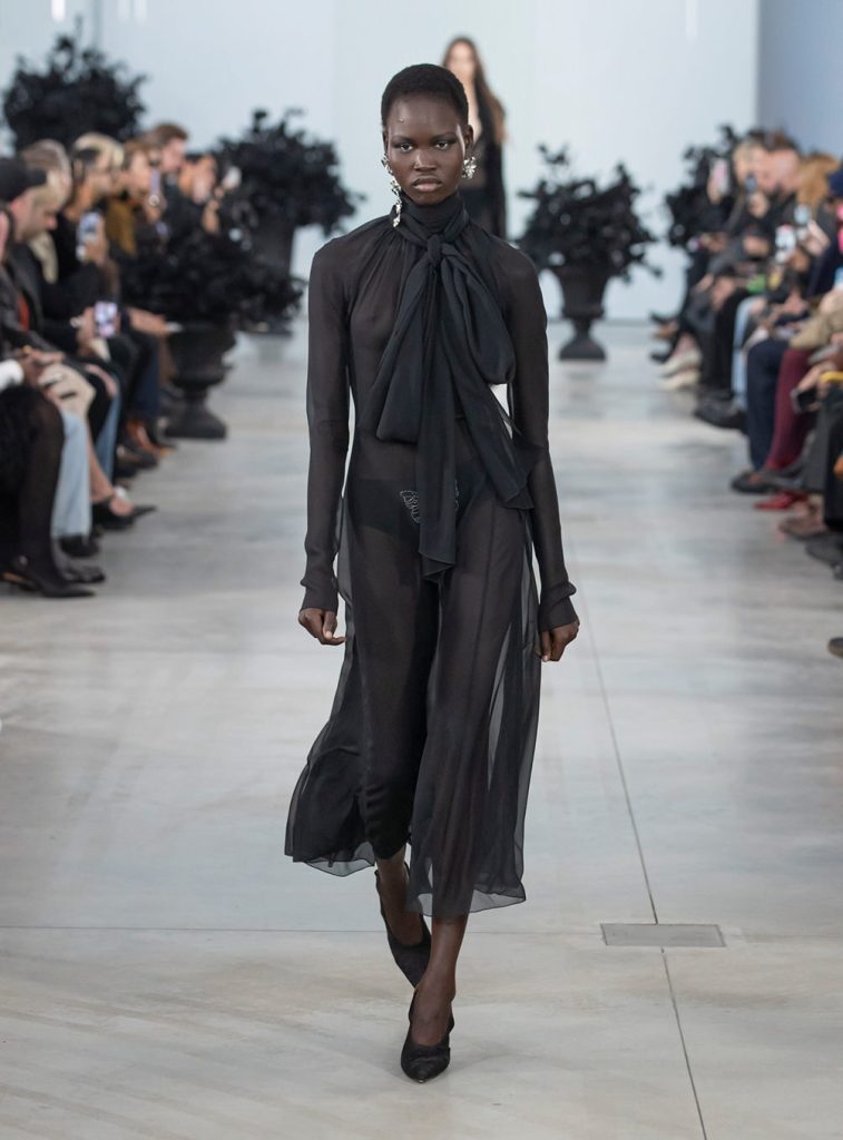 ضج عرض blumarine للمجموعة الجاهزة لخريف وشتاء 25-26 بالكثير من الجدية وتلك الرومانسية الحزينة والانتفاضة التي ظهرت في ألوانه وقصاته. بدأ العرض باللون الأسود المحفوف بالجسد على الكثير من الرقة والغموض .شيء يسيل على طول ساحة العرض بالرغم من تلك القتامة انها روح السينما المثيرة كما يراها مصمم الدار الإيطالي ديفيد كوما.
