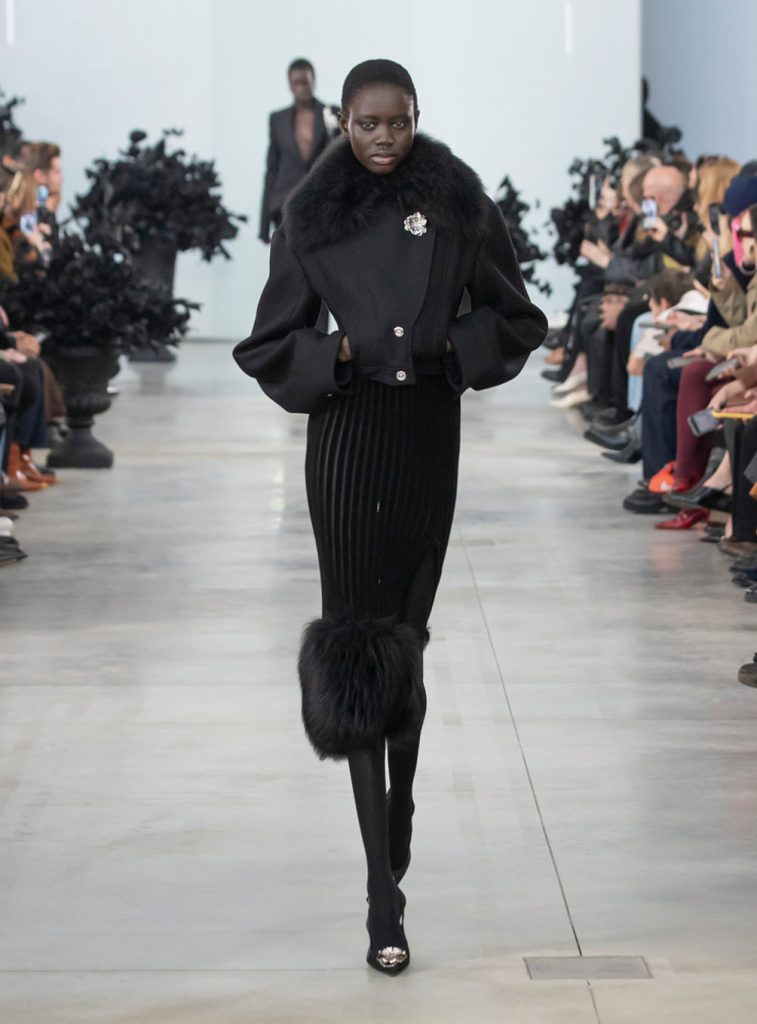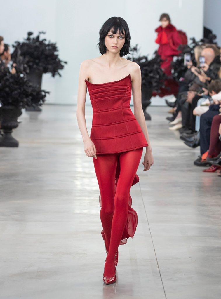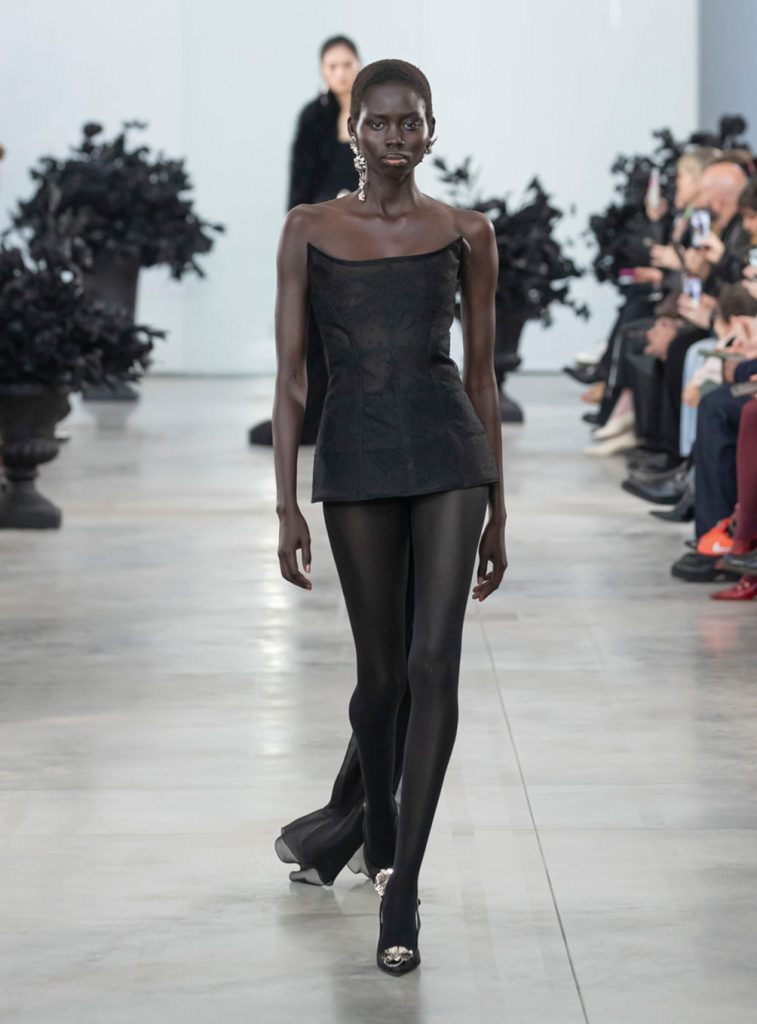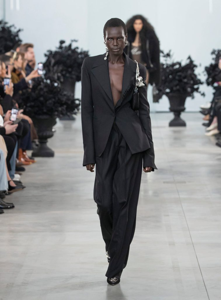ضج عرض blumarine للمجموعة الجاهزة لخريف وشتاء 25-26 بالكثير من الجدية وتلك الرومانسية الحزينة والانتفاضة التي ظهرت في ألوانه وقصاته. بدأ العرض باللون الأسود المحفوف بالجسد على الكثير من الرقة والغموض .شيء يسيل على طول ساحة العرض بالرغم من تلك القتامة انها روح السينما المثيرة كما يراها مصمم الدار الإيطالي ديفيد كوما.