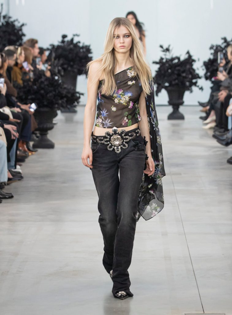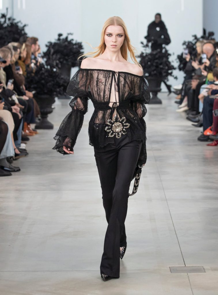 العصرية تأتي على شكل رومانسية دافئة وقصات مبتكرة انها مزيج بين الرقة وتلك الاشواك الحادة بين الحساسية والعدوانية. حتى الجينز محفور بالكريستال والمعاطف مزدانة بالفرو والموسلين على طول الخط ينشد الحميمة والعطف والاشواك تعاني عند الاطراف.