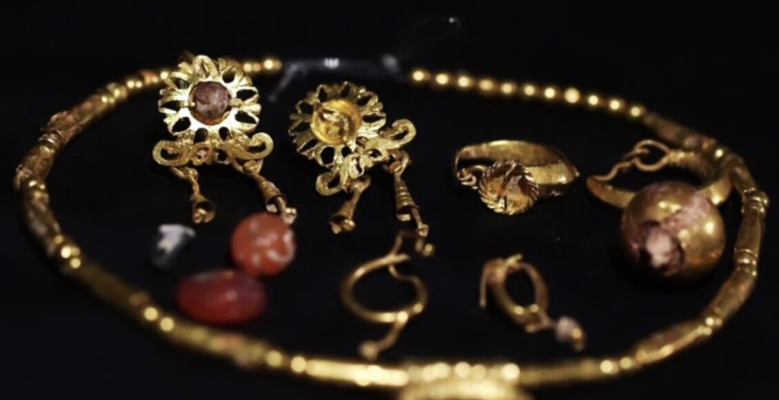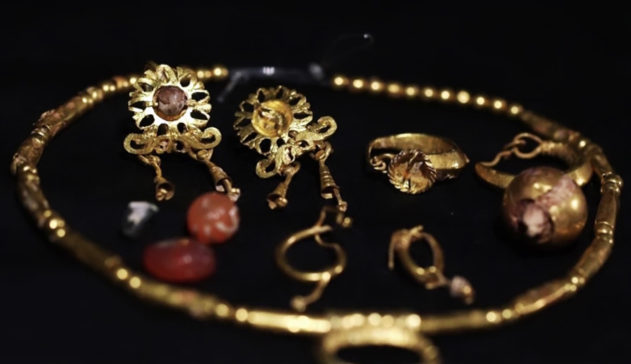 في الأراضي المحتلة، تمّاكتشافالكنز،الذيتضمنأقراطذهبيةودبوسشعروقلادةوحباتزجاجيةوذهبيةتحملرموزإلهةالقمرالروماني “لونا“،فيتابوتمنالرصاصعام1971 ،ولكنلميُعرضالااليومفيمعرضجديد،حسبماوردعن المسؤولين.