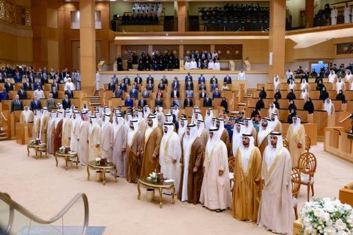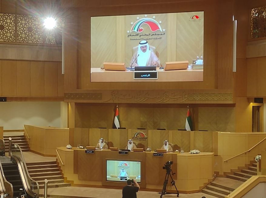 وشهد افتتاح الفصل التشريعي الـ 18 لـ “المجلس الوطني الاتحادي”، حضور سمو الشيخ منصور بن زايد آل نهيان نائب رئيس الدولة نائب رئيس مجلس الوزراء رئيس “ديوان الرئاسة”، وسمو أولياء العهود ونواب الحكام، وسمو الشيوخ، وعدد من المسؤولين المدنيين والعسكريين وأعضاء السلك الدبلوماسي في دولة الإمارات العربية المتحدة.