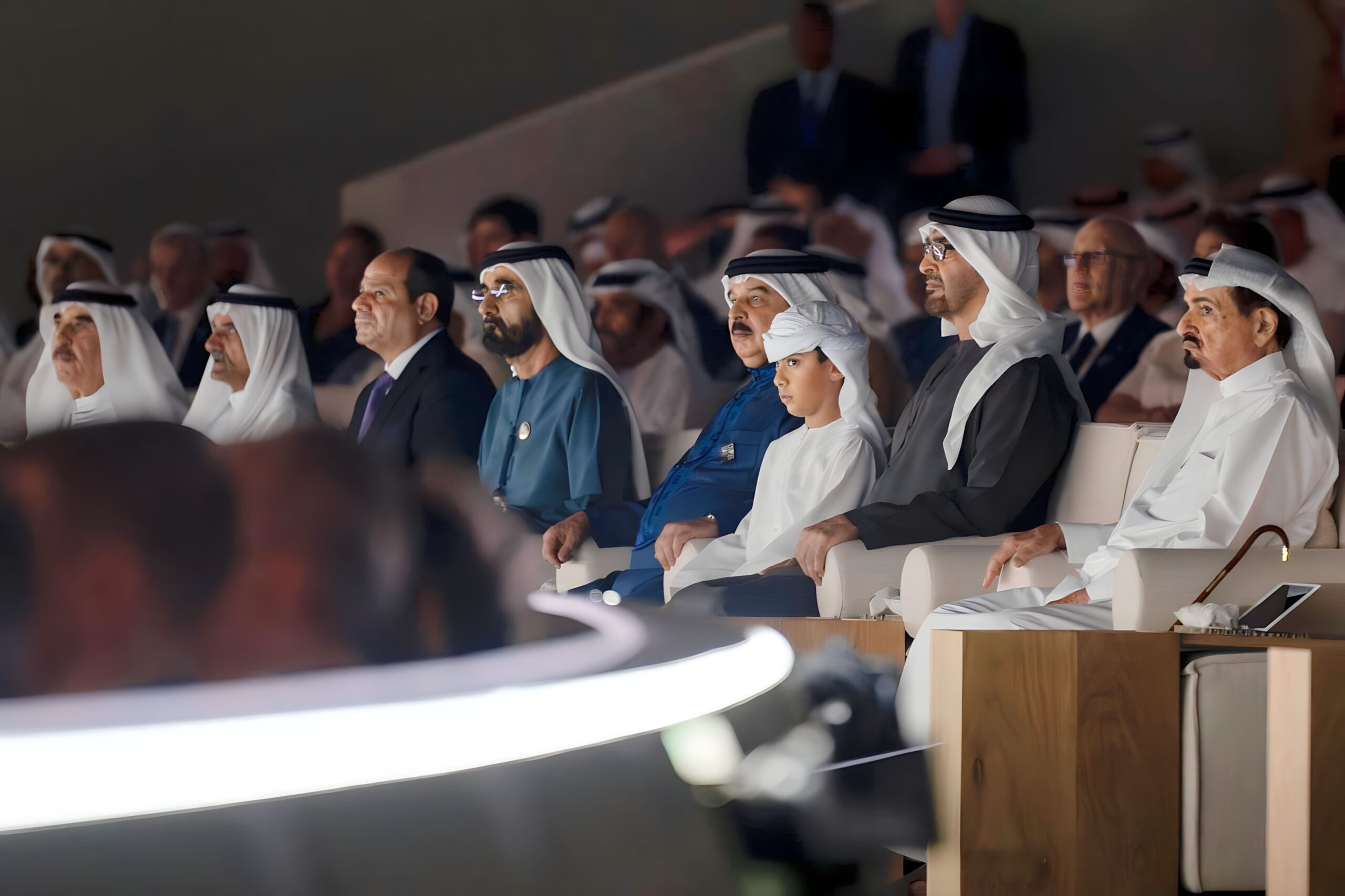 بمدينة “إكسبو دبي”، وتحت شعار “رحلة نحو غد مستدام”، شهد صاحب السمو الشيخ محمد بن زايد آل نهيان، رئيس دولة الإمارات العربية المتحدة، وصاحب السمو الشيخ محمد بن راشد آل مكتوم، نائب رئيس الدولة رئيس مجلس الوزراء حاكم دبي،، وأصحاب السمو أعضاء المجلس الأعلى للاتحاد حكام الإمارات، وسمو أولياء العهود، وعدد من ضيوف مؤتمر الأطراف في اتفاقية الأمم المتحدة الإطارية بشأن تغير المناخ “COP28″، مساء اليوم الحفل الرسمي احتفالاً بعيد الاتحاد الـ 52، احتفالٌ يُؤرخ مرور 52 عاماً من روح الوحدة و52 عاماً من الإنجازات.