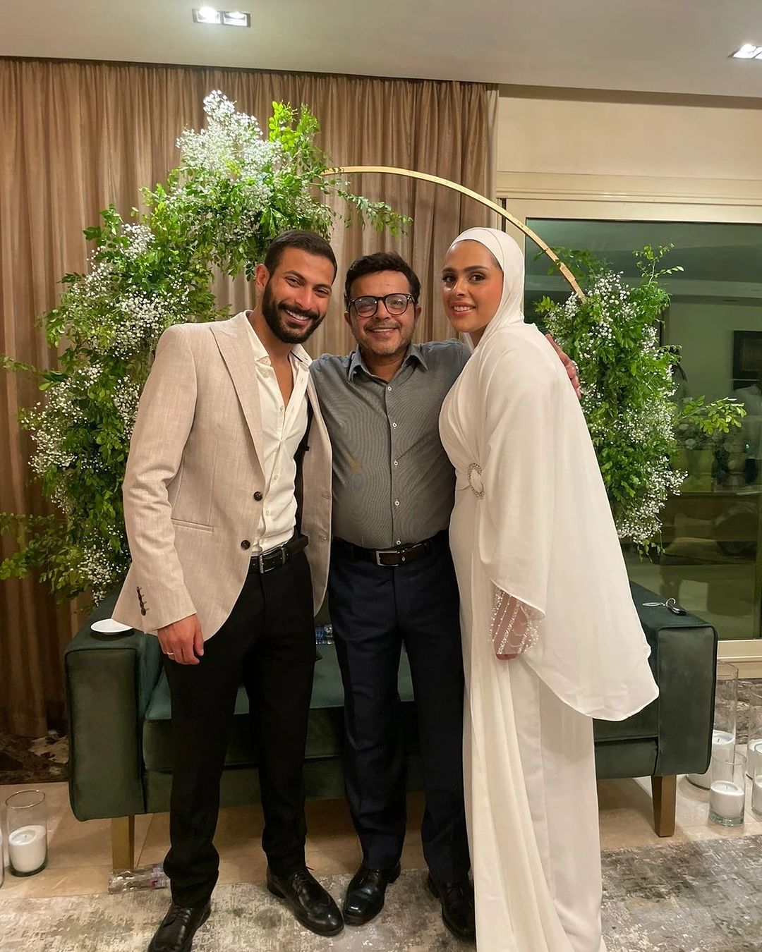 وتداول رواد منصات التواصل الاجتماعي، صوراً من حفل الخطوبة والتي ظهرت من خلالها ابنة هنيدي فريدة بإطلالة بسيطة وهادئة، حيت ارتدت فستاناً باللون الأبيض، وفي صور أخرى ظهرت فريدة برفقة خطيبها الدكتور حازم فؤاد الدباح، وهما يكشفان عن دبل الخطوبة.