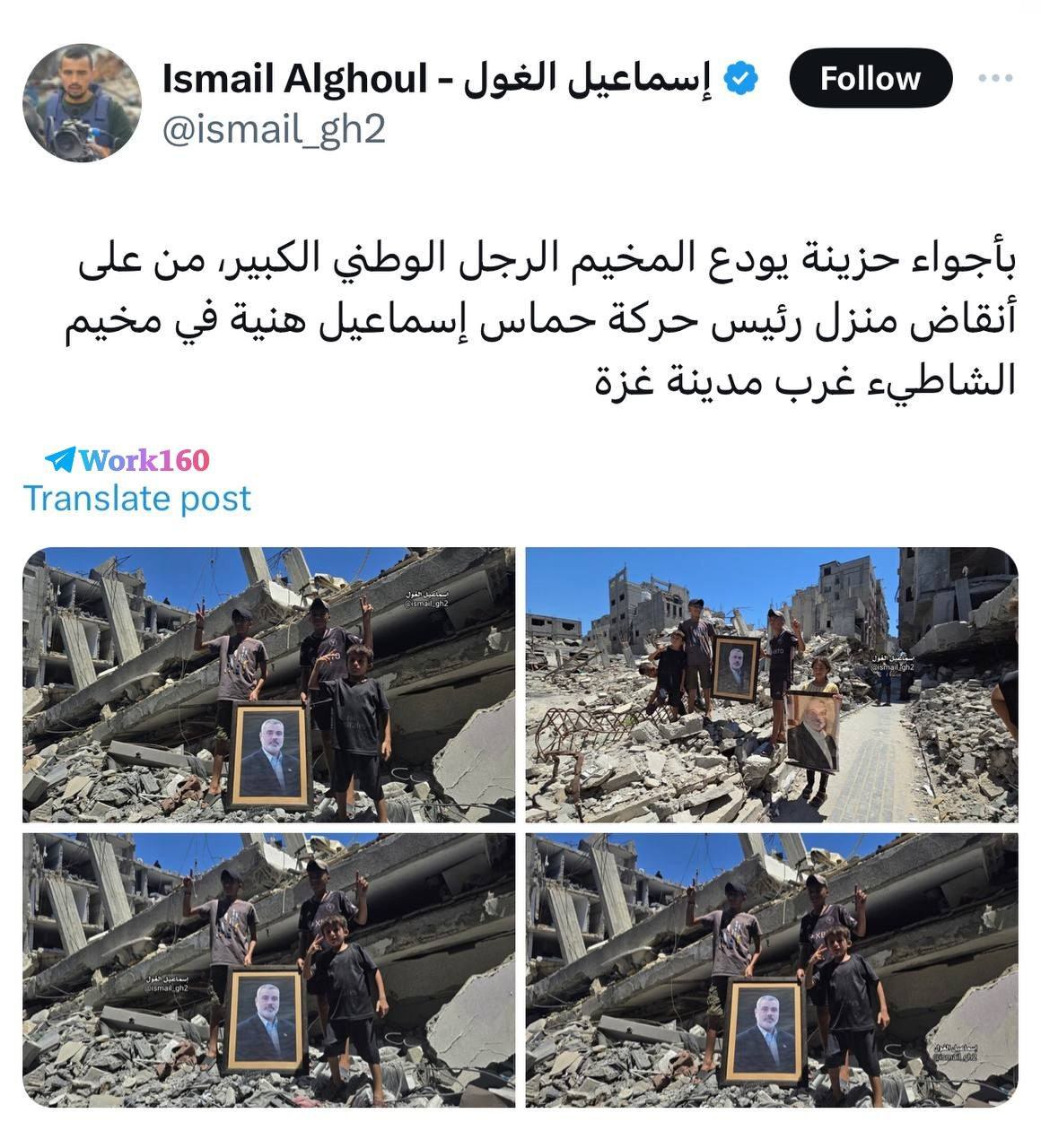 وكانت هذه آخر تغريدة له من على أنقاض منزل هنية في غزة: