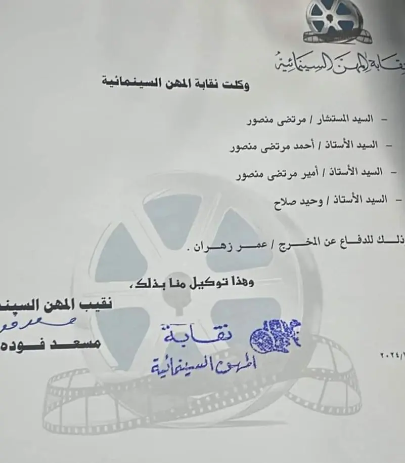 تم اختيار المحامي مرتضى منصور ونجليه لتولي هذه المهمة، وقد وافق على الفور بعد التواصل معه. وبذلك، حررت نقابة السينمائيين توكيلاً رسمياً له للدفاع عن زهران في القضية.