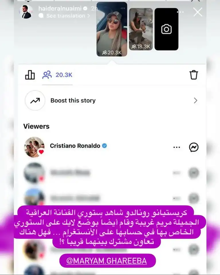 أحدثت الفنانة العراقية مريم غريبة ضجة واسعة عبر مواقع التواصل الاجتماعي بعدما أبدى النجم العالمي كريستيانو رونالدو إعجابه بإحدى صورها على “إنستغرام“.