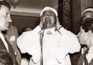 مصطفى إسماعيل الذي – لابد وهو يقرأ – لابد أن تتمثل القرآن أحكامًا وحوادث وشخوصا، لابد أن ترى كم كان سيدنا يوسف مخلوقا إلهيا جميلا وكريما، وأن تشم رغبة زوجة العزيز وتسمع حيرتها ولوعتها وهي المدلهة فى حب من اتخذته ابنًا ثم حبيبا، لابد أن ترى غيرة أخوة يوسف وحزن وحسرة أبيه يعقوب وانبهار ودهشة النسوة اللائي رحُنَّ يقطعن أيديهن فى حضرة وجلال الجمال الرباني، أنت إذن فى حضرة مصطفى إسماعيل الذي لا تنتهي عجائبه، مصطفى إسماعيل الذي كانت تقتفي أثره قبائل من المريدين والمحبين، مصطفى إسماعيل الذي كانت تشعله كلمة الله من مستمع فقير يبكي خشية واعتبارًا من جلال وجمال آيات الذكر الحكيم، مصطفى إسماعيل الذي قيل عنه أنه يتحول فى الساعة الثانية من القراءة – خاصة وسط الجموع الغفيرة من الناس – إلى كائن خرافي يجوب سماوات وأراضين لم تطأها قدم ولم تعرفها قواعد وكتب حتى أنه كان يضيق ذرعًا بالقراءة داخل ستديو الإذاعة ويراه سجنًا لصوته حتي أنه كان يجهر بذلك للمقربين منه قائلا: “طول ما أنا أمام هذه الحَدِيدة (ميكروفون الإذاعة) لن أجيد القراءة، أنا مصطفى إسماعيل فقط بين الناس”.
