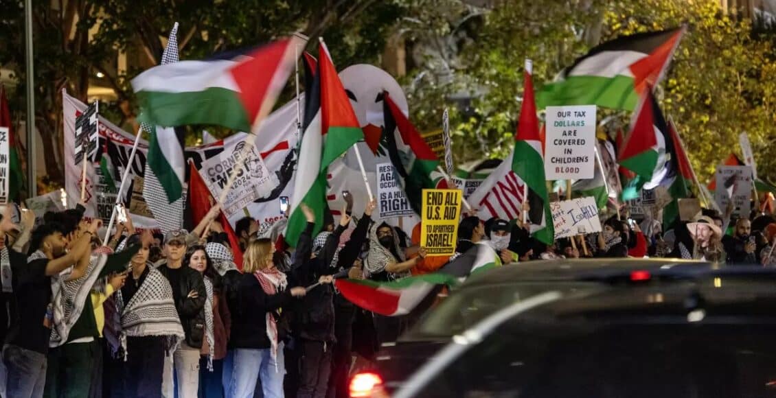 منذ مدة، لم يهدأ أعضاء حركة الشباب الفلسطيني الذين يدعون إلى وقف إطلاق النار في غزة، وقد قاموا بمسيرة في شارع ويلشاير في 8 ديسمبر بعد حضورهم مسيرة في هولمبي بارك، حيث كان الرئيس بايدن يحضر حملة لجمع التبرعات. وتستعد الشرطة اليوم  وسط موسم من العمال المضربين والمحتجين على الحرب، للمظاهرات المحتملة قبل حدث يوم رأس السنة الجديدة.