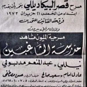 تداول رواد مواقع التواصل الاجتماعي بوستر إعلاني قديم لمسرحية ” مدرسة المشاغبين “، التي عرضت لأول مرة في عام 1973 في العاصمة اللبنانية بيروت.