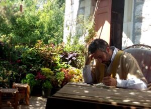 مكرم غصوب الشاعر والأكاديمي اللبناني الذي يكتب من حديقته الغناء وتحت عريشته التي جمعت معظم الأدباء العرب. يؤسس لحالة ثقافية خاصة بين الفلسفة والشعر، ويعمل على نصٍ مشغول بعناية وفي مساحة “خطيرة” بين الفلسفة والشعر.