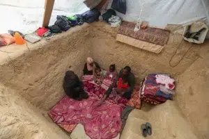 لمواجهة البرد والمطر في الشتاء، خطرت لرب العائلة الفلسطيني تيسير عبيد الذي لجأ مع أسرته إلى دير البلح وسط قطاع غزة، فكرة الحفر في الأرض.