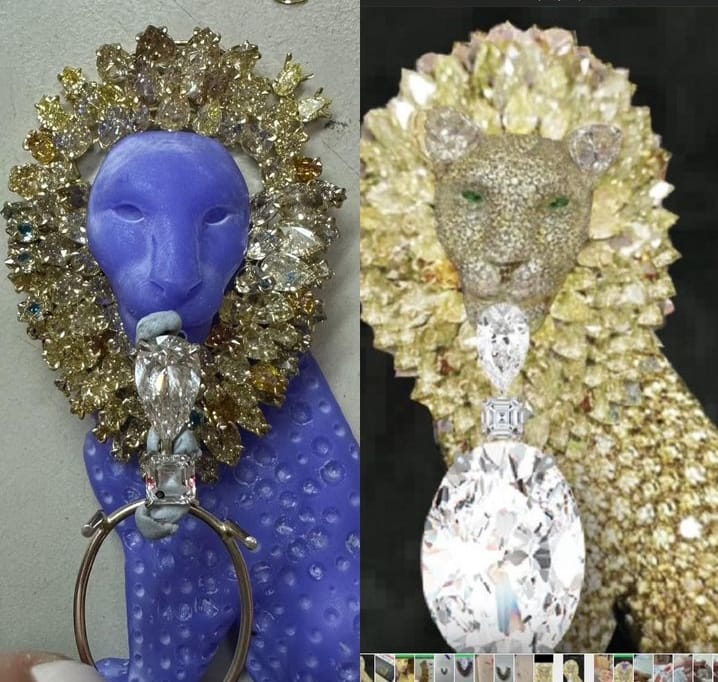 وقد استعرض الوريث الملياردير، قطعة مجوهرات مذهلة بشكل خاص خلال الاحتفال الذي استمر ثلاثة أيام. فقد ارتدى أمباني دبوسًا على شكل أسد مصنوعًا خصيصًا ومرصعًا بالجواهر، ويضم ماسة ضخمة تتجاوز 50 قيراطاً.