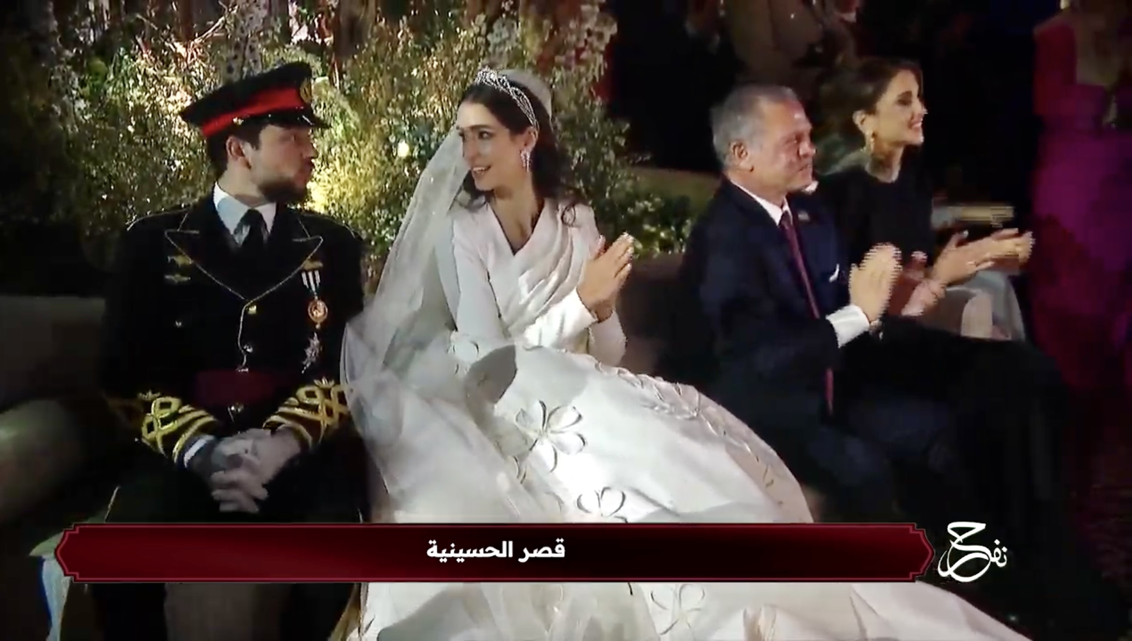 ابتدأت مراسيم استقبال جلالة الملك عبدالله الثاني وجلالة الملكة رانيا العبد الله لضيوف حفل زفاف سمو الأمير الحسين بن عبدالله الثاني، ولي العهد، وسمو الأميرة رجوةُ الحسين، في “قصر الحسينية“، في تمام الساعة 9:25 مساءً توقيت الإمارات العربية.