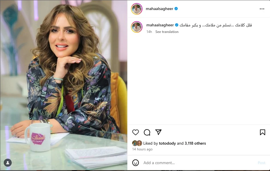 وكتبت مها الصغير، قائلةً: “قلّل كلامك… تسلم من ملامك… ويكبر مقامك“.