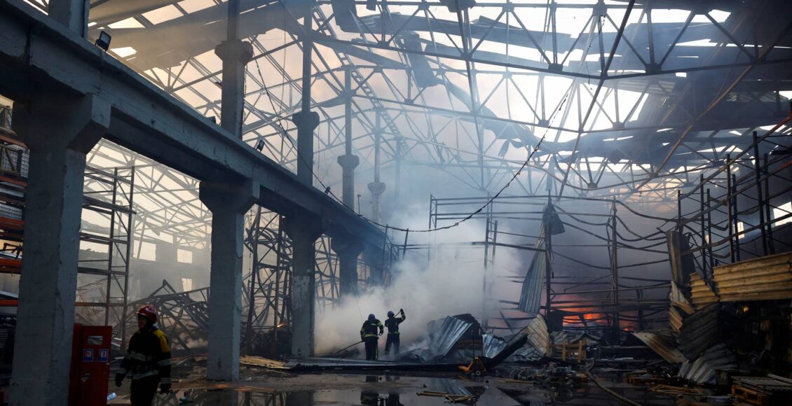 وقالت الإدارة العسكرية للعاصمة كييف إن 10 محاصرين تحت أنقاض مستودع تضرر من حطام متساقط.