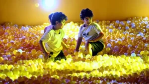 ويتضمن مسبح الكور قسمين، أحدهما للكبار بعمق متر والآخر مخصص للصغار بعمق 50 سنتيمترًا للقفز والسباحة واللعب في بحر من الكرات البلاستيكية المعاد تدويرها، وذلك لعيش تجربة ممتعة تتيح للأهالي مشاركة صغارهم في اللعب بكل حماس وبهجة.
