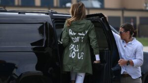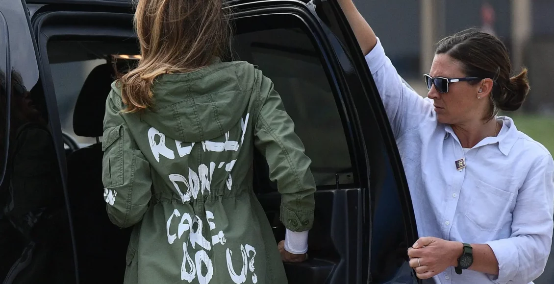 شوهدت السيدة ميلانيا ترامب، السيدة الأولى السابقة، والتي تصدرت عناوين الصحف في عام 2018 من خلال ارتداء سترة عليها عبارة “أنا حقًا لا أهتم، هل تفعل أنت؟” لتثير الجدل مرة أخرى بارتدائها ذات الجاكيت.