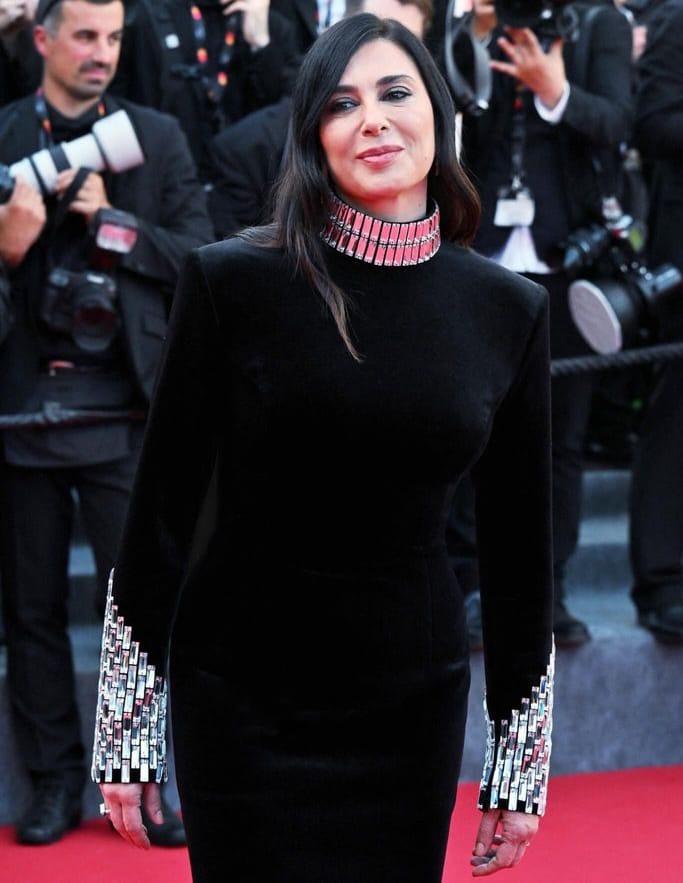 نادين لبكي لبكي الممثلة والمخرجة وعضو في لجنة حكم مهرجان كان السينمائي. تألقت بالأسود خلال مرورها على السجادة الحمراء. فقد أخذت من لون الغموض طلة لها خلال عرض فيلم “megalopolis” من تصميم جان لوي صبجي.