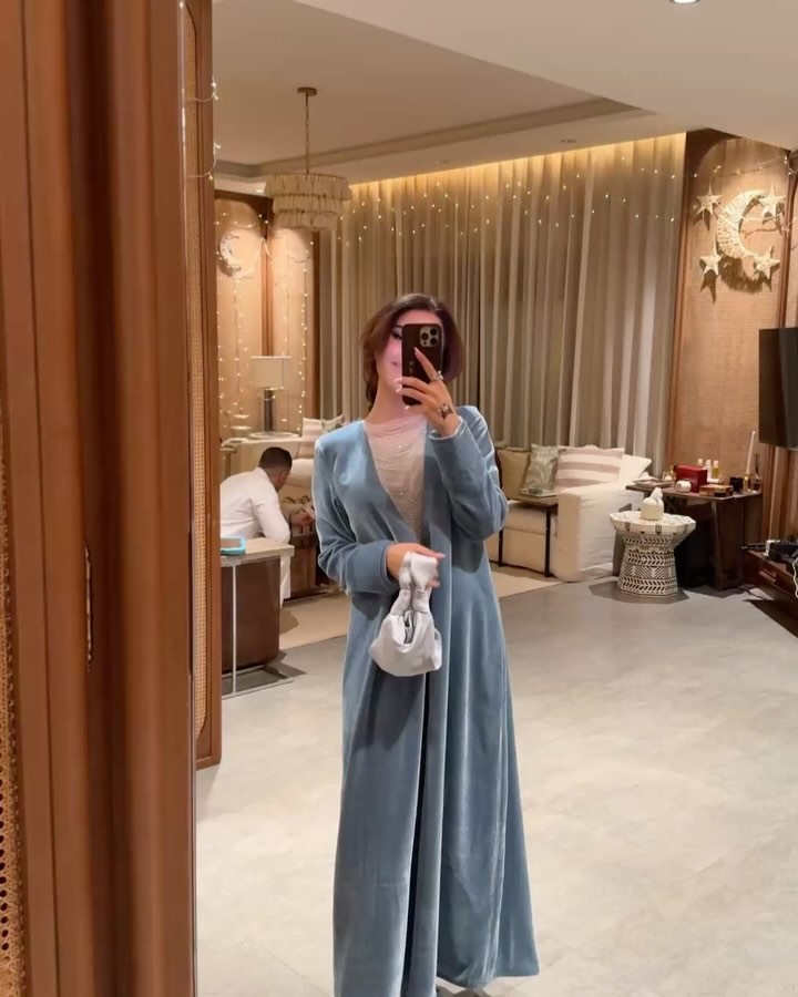 في أحدث منشور لها على إنستغرام، تألّقت نجود بجلابيّة من المخمل باللون الأزرق السّماوي الذي يدلّ على الصفاء والهدوء، من علامة “غرزة” (Stitch Label) السعوديّة، وهي مزيّنة الصدر بأطواقٍ من الخرز الأبيض البرّاق. واختيار اللون الأزرق هنا، مثالي للشهر الفضيل وأجواء الروحانيّة التي يتميّز بها.